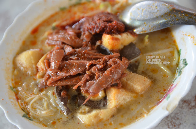 Walking distance from asam laksa air Itam to this sister Curry Mee , There are numerous Curry Mee stalls in Penang and each stall has its own version of soup and ingredients. Some have their coconut based stock reddish while some comes in a lighter pale color version, at times known as White Curry Mee .